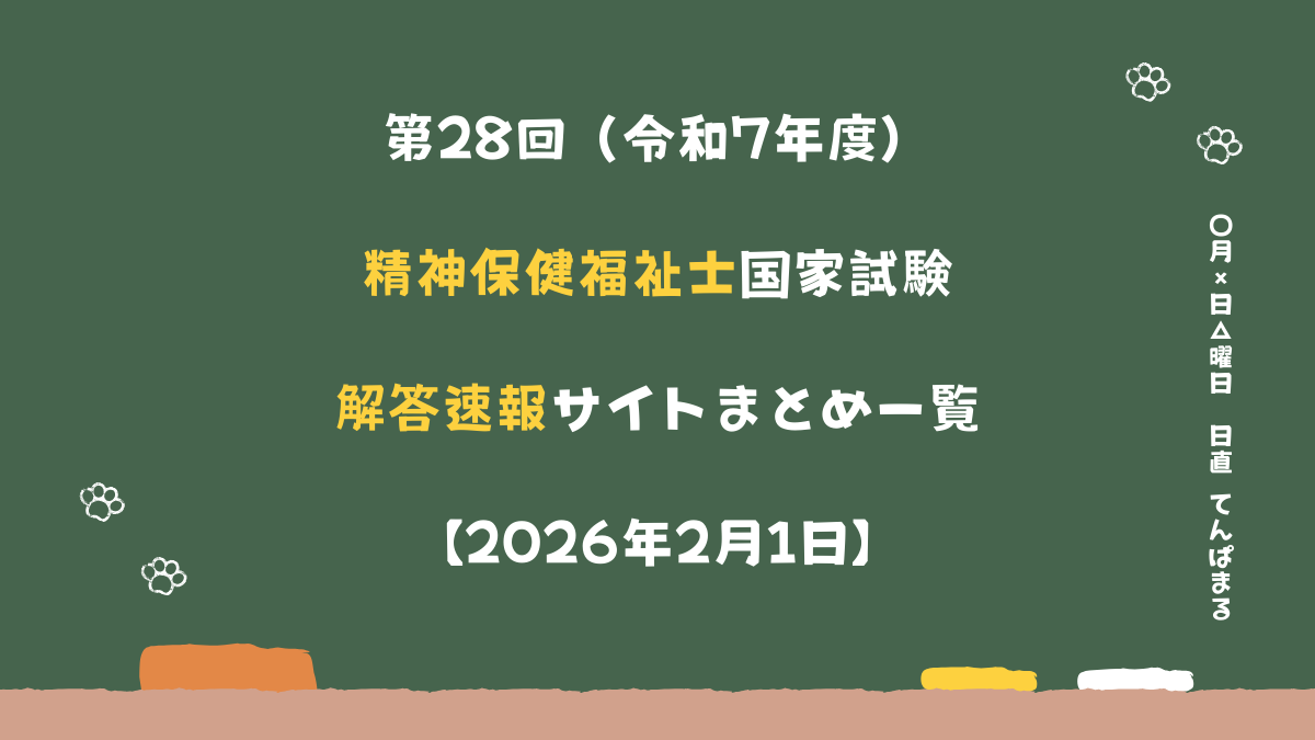 第28回(令和7年度)精神保健福祉士国家試験 解答速報サイトまとめ一覧【2026年2月1日】